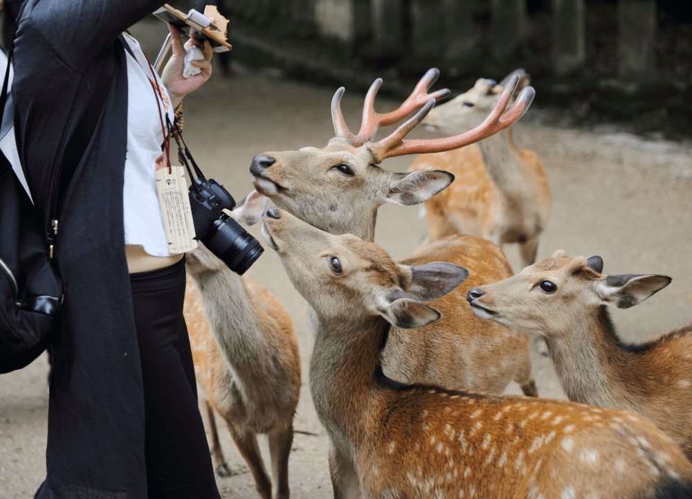 - Todaiji Temple & Nara Park: Todaiji Temple is the head temple of the Kegon school of Buddhism and houses the world’s largest bronze Buddha. Nara Park is home to freely roaming deer, a symbol of the city.
